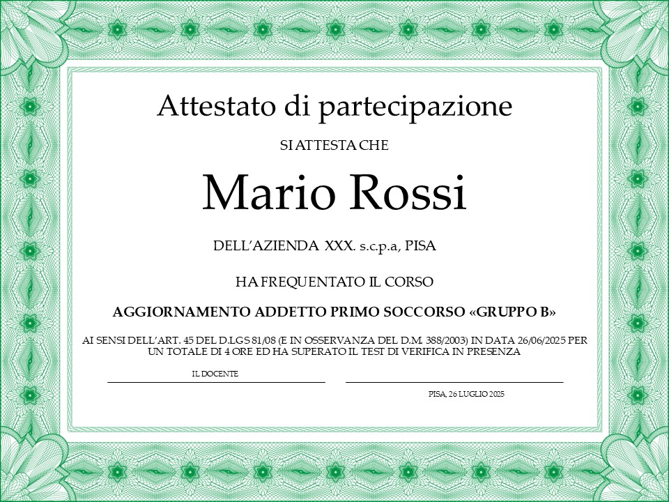 Fac simile attestato corso ps